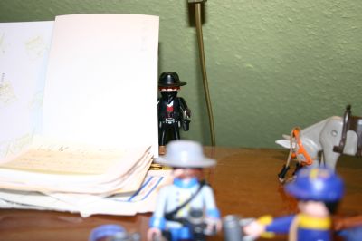 Arthur: Okay Männer, nun sind wir soweit. Wir gehen so vor: Erst schleichen wir uns an und checken mal die Lage ab. Sollte sich ein günstiger Moment bieten, schlagen wir los! Merkt Euch: keine unnötigen Risiken eingehen! Wir sind zahlenmäßig überlegen!