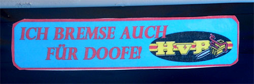 "Und noch was, Gospodina Schatzi. Meine Waltraud trägt sich meistens schwarzes Leder und ist furchtbar eifersüchtig. Der Kerl arbeitet sich in 'Blaue Auster' am Hafen." Nun, da wird Schatzi wohl doch lieber beim Hugo bleiben.