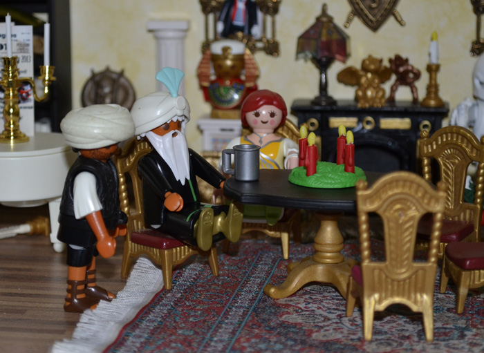 “Er ist im Speisezimmer, Sire. Zusammen mit der Herrin. Wenn sie gestatten, führe ich sie hin.”