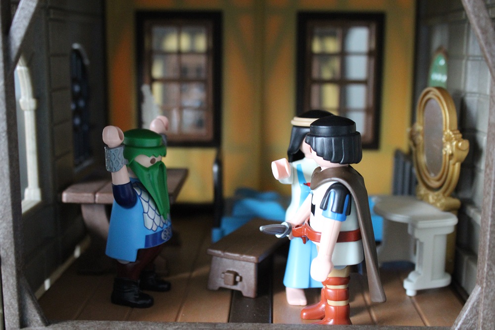 Grünbart: „Dann trinke ich schon mal auf eine glorreiche Jagd nach der Krone. Mit gut geölter Kehle wird es ein leichtes sein.“