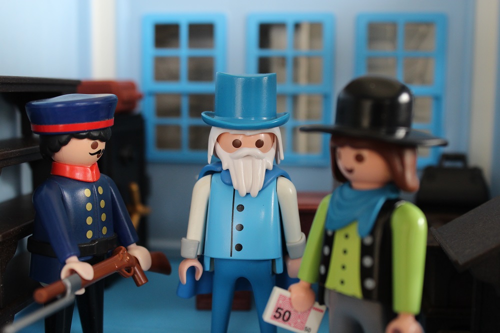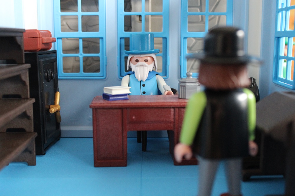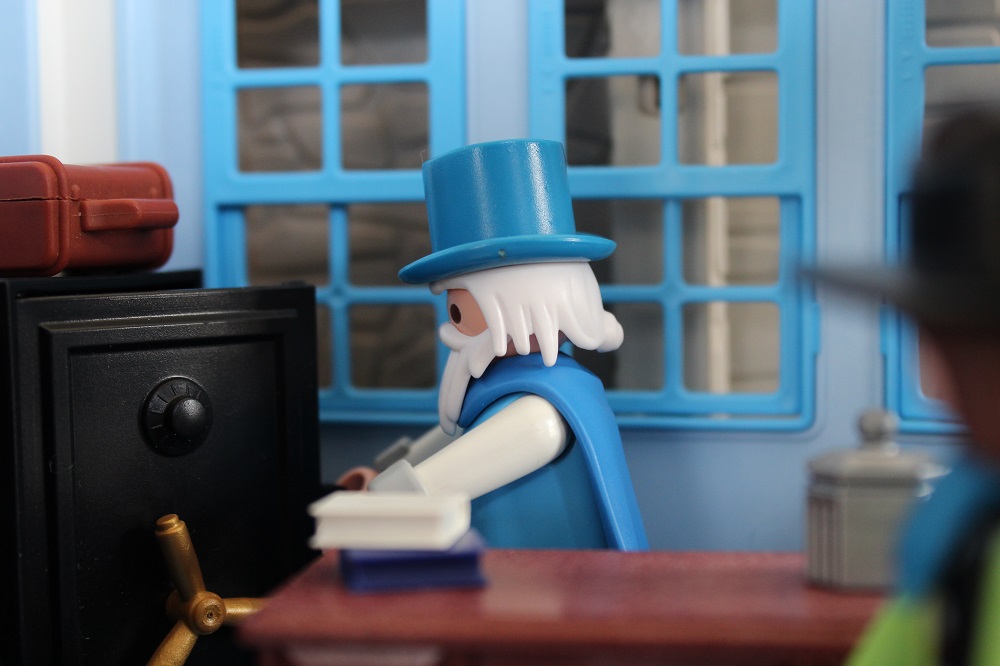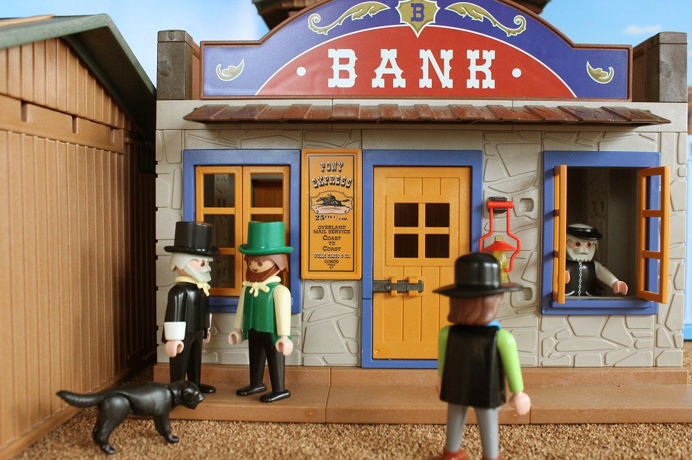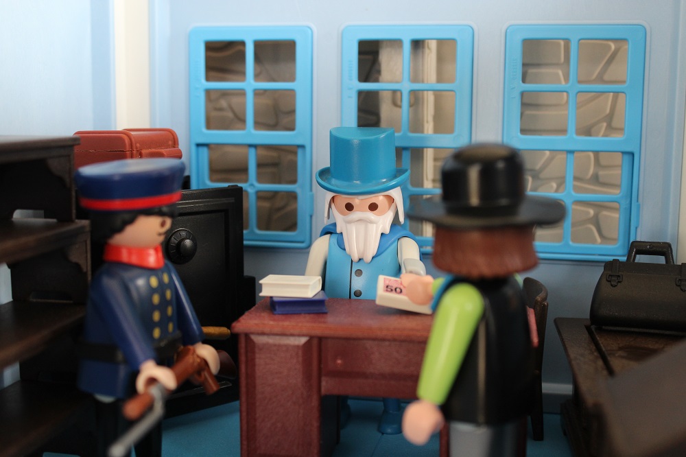 Bei der Bank mußte ich improvisieren. Eigentlich wollte ich ein richtiges imposantes Gebäude haben aber aus Mangel an Material muss man wieder