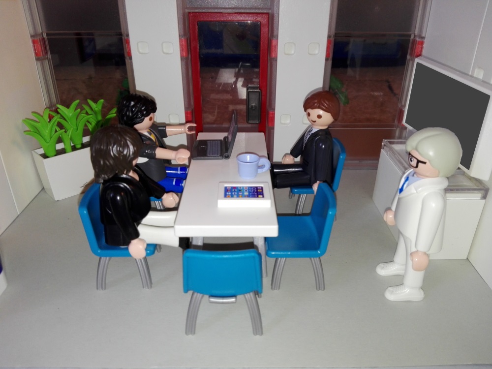 Nach einer kurzen Begrüßung nehmen alle am Konferenztisch Platz.