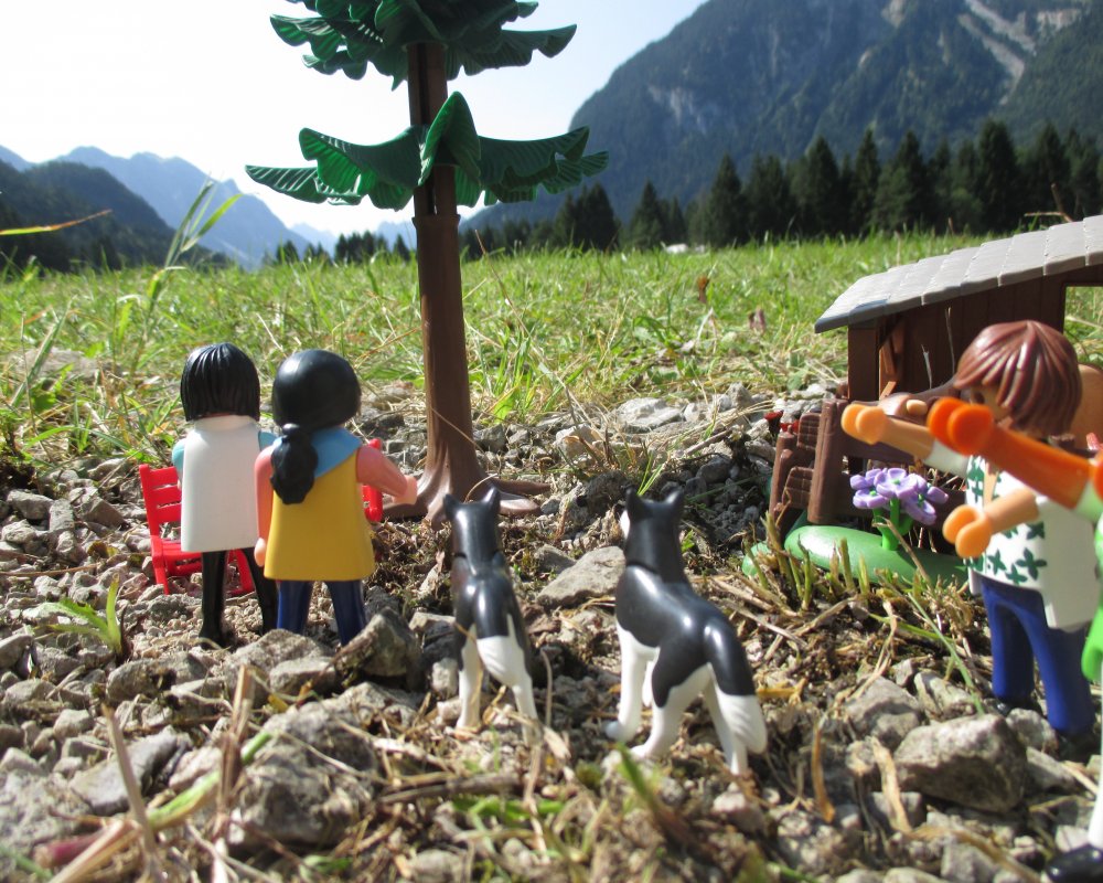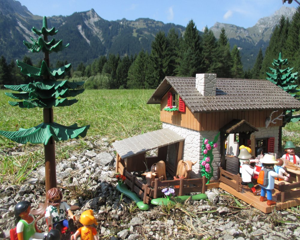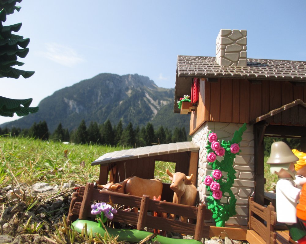 Ja, vor so einer Bergkulisse sieht die Almhütte gleich viel besser aus, als wenn ich sie bei mir in die Steppe stelle...