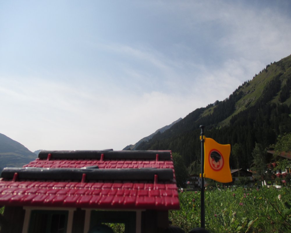 Schon von weitem kann man die Flagge der Bergrettung sehen.