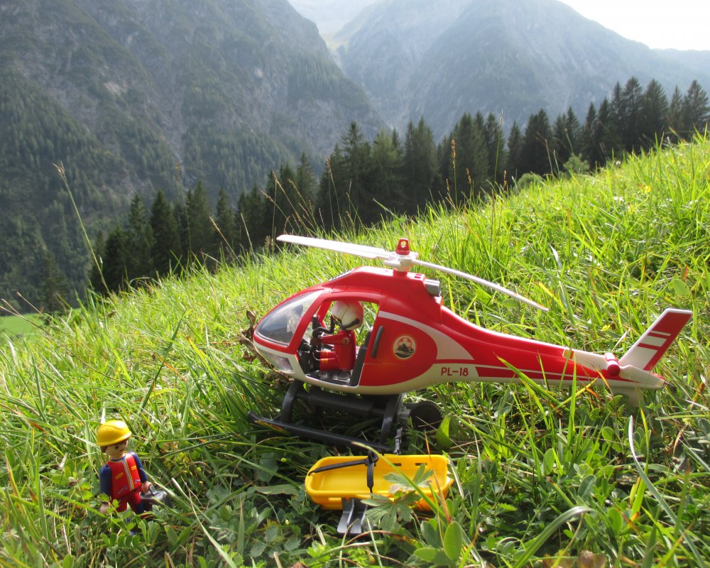 Auf einmal hören wir ein lautes Dröhnen über unseren Köpfen. Ein Blick nach oben, wir sehen den Rettungshubschrauber im Landeanflug. Die Eltern sind sogar auch dabei.