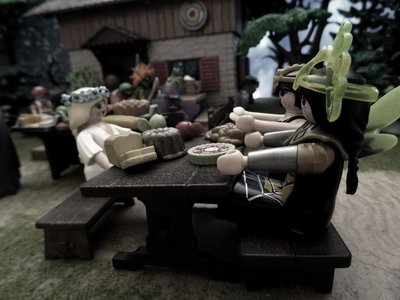 Sabarinda: „Darf ich ihn in seine Stadt zurück prügeln?“ Lilly: „Wir kennen uns noch gar nicht. Darf ich mich zu Euch setzen.“