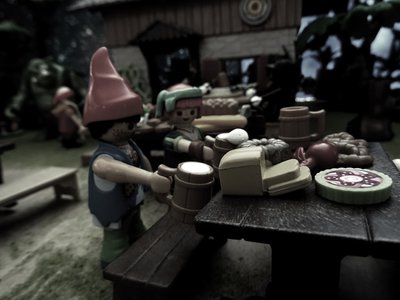 Crita: „Sicher nicht, aber ihnen doch recht ähnlich. Ich hab diese Gartenzwerge schon öfter in der Stadt beobachtet.“ Sabarinda: „Was bräuchtet Ihr noch in den Gärten, um die Menschen endgültig vom Wald fernzuhalten?“