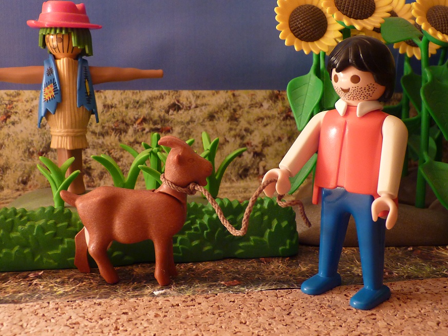 In einer Hast sprang er hinauf, holte sein Bartmesser, seifte der Ziege den Kopf ein und schor sie glatt wie seine flache Hand. Und weil die Elle zu ehrenvoll gewesen wäre, holte er die Peitsche und versetzte ihr solche Hiebe, dass sie in gewaltigen Sprüngen davonlief.