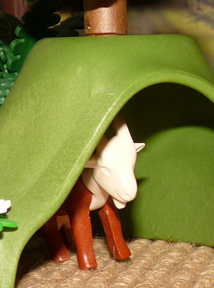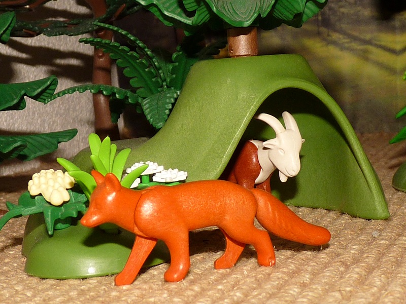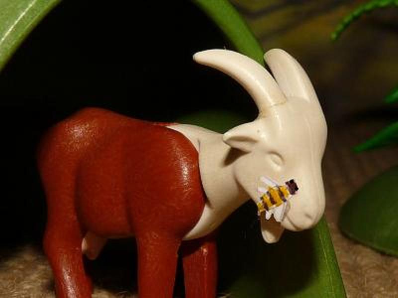 Sie flog in die Fuchshöhle, setzte sich der Ziege auf den glatten geschorenen Kopf.