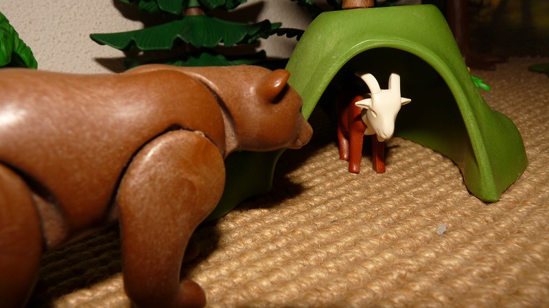 „Das wollen wir bald austreiben“, sprach der Bär, ging mit zu der Höhle und schaute hinein.