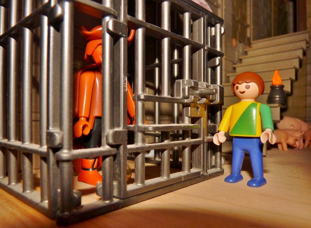 Da war große Verwunderung über den wilden Mann, der König aber ließ ihn in einen eisernen Käfig auf seinen Hof setzen und verbot bei Lebensstrafe, die Tür des Käfigs zu öffnen.