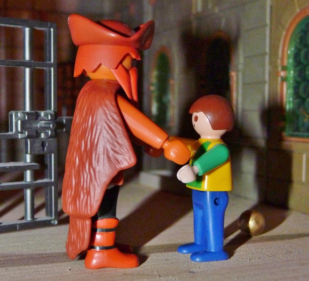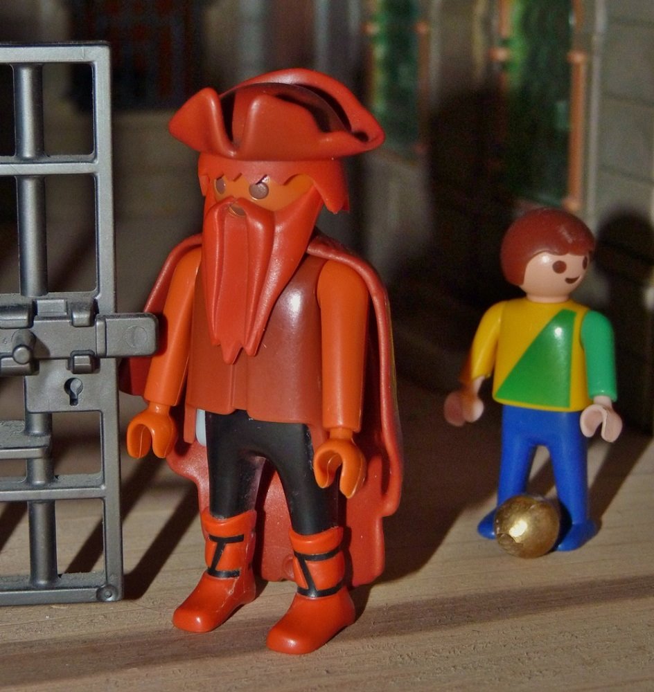 Der König hatte einen Sohn von acht Jahren, der spielte einmal auf dem Hofe, und bei dem Spiele fiel sein goldener Ball in den Käfig. Der Knabe lief hin und sprach: „Gib mir meinen Ball heraus.“ „Nicht eher“, antwortete der Mann, „als bis du mir die Tür aufgemacht hast.“ „Nein“, sagte der Knabe, „das tue ich nicht, das hat der König verboten“, und lief fort.