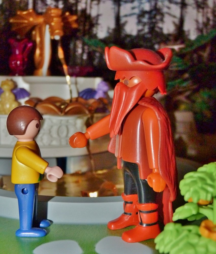 Du hast recht, ich habe zum ersten Male eine Märchenszene ins Freie verlegt, da ich keinen Playmoberg habe. Daher musste unsere Natursteinstützmauer herhalten.