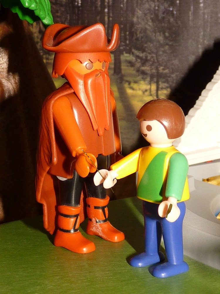 Sie gab ihm wieder eine Handvoll Dukaten, aber er wollte sie nicht behalten und gab sie dem Gärtner als Spielwerk für seine Kinder. Den dritten Tag ging's nicht anders, sie konnte ihm sein Hütchen nicht wegnehmen, und er wollte ihr Gold nicht.