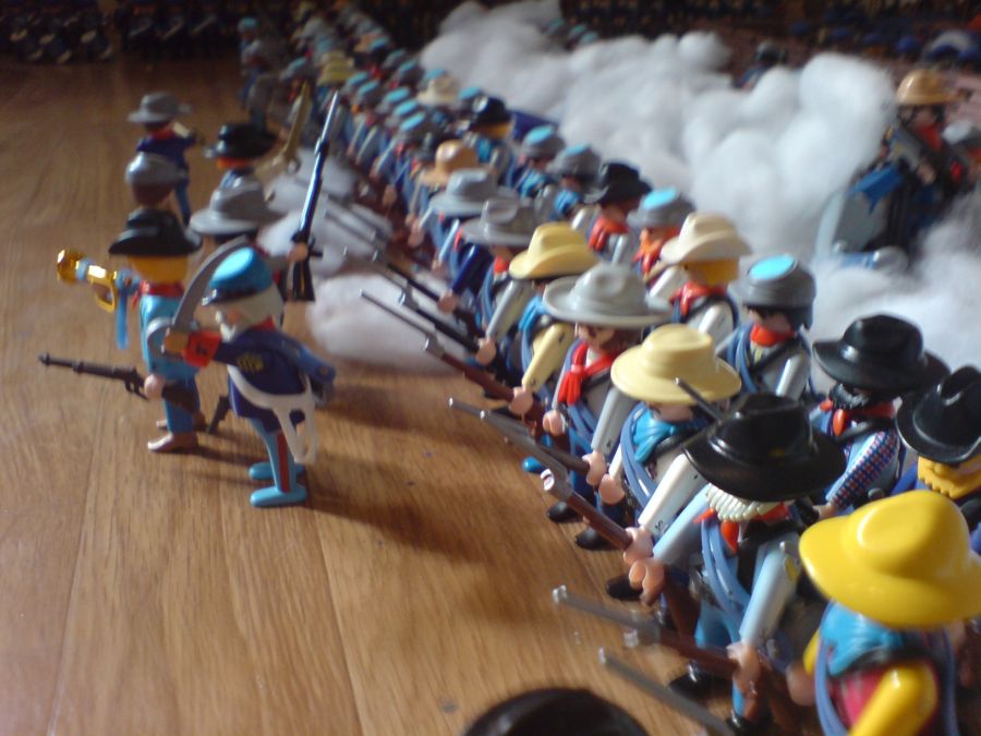 - "Die können uns mit Leichtigkeit blockieren. Hier können wir nichts ausrichten. Wir reiten zu den Yankees und schliessen uns deren Gegenangriff an. Schwadron? Rückzug!"