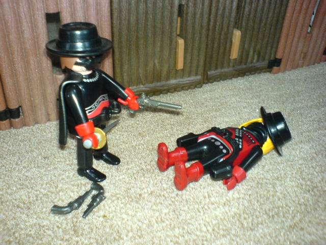 Ja was und? Was macht man nun in einem Lager voller Banditen? Das was Playmo-Fritz am liebsten macht: