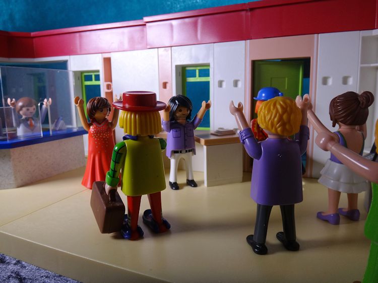 Wir dürfen die Arme nicht runternehmen und reden dürfen wir auch nicht.