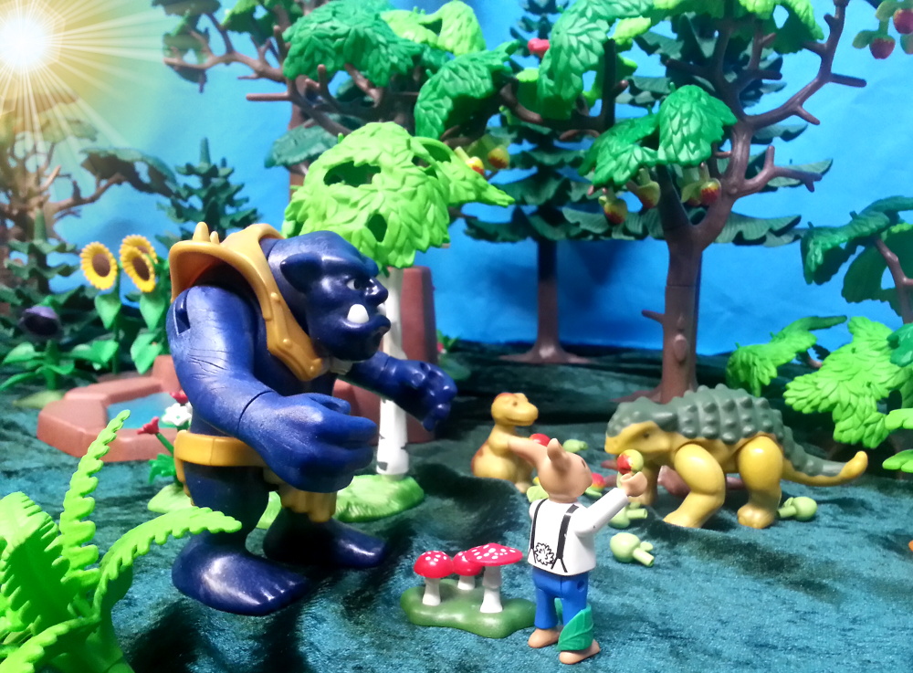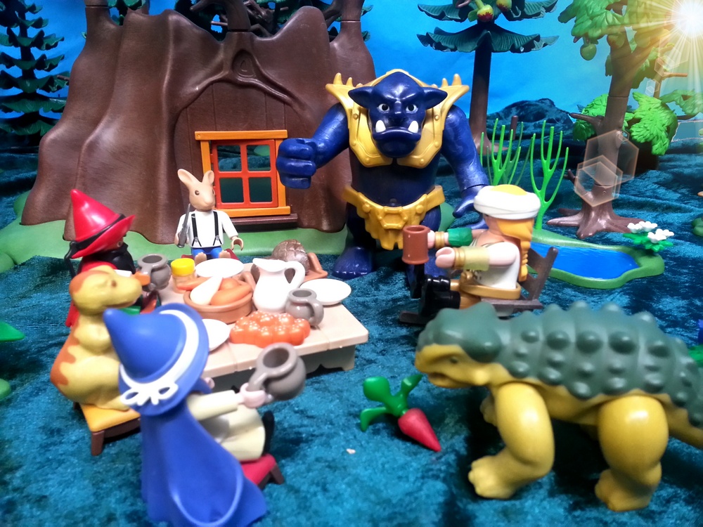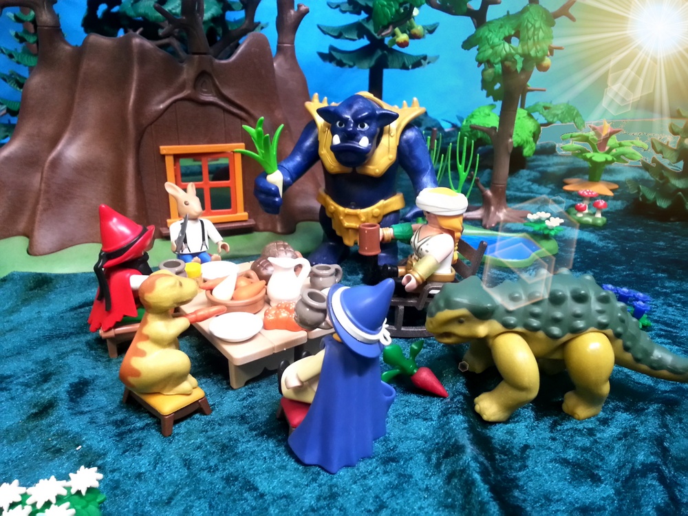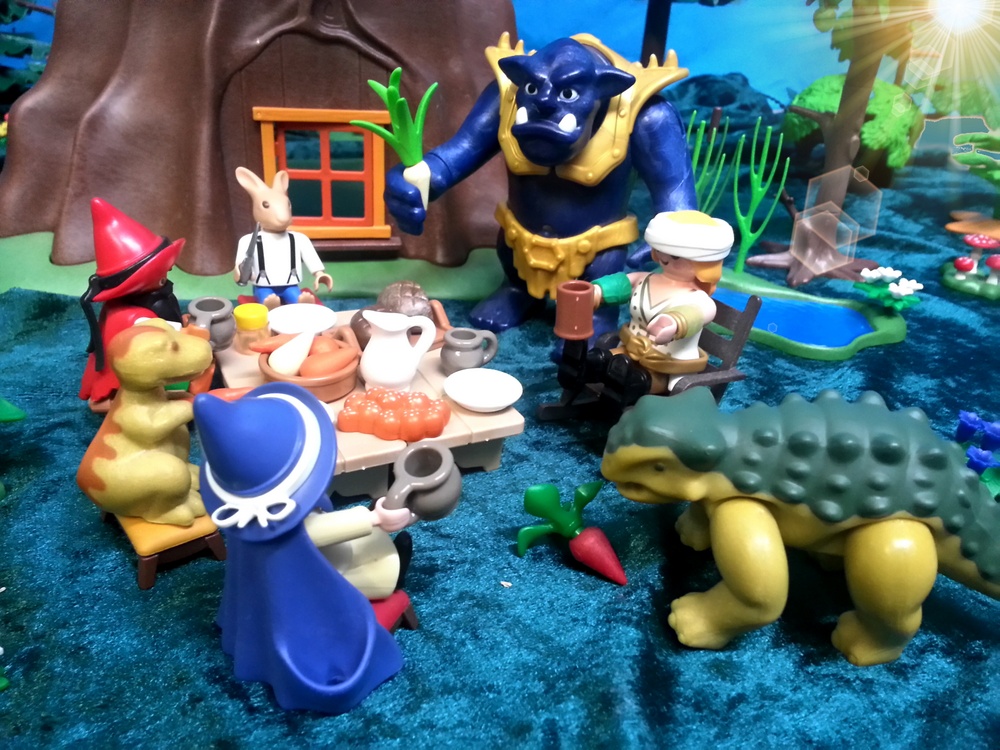Knuffel und Töffel sehen kurz hoch, nicken, und der erste Pilz ist schnell verschwunden. Die Blätter, die sie vorher gegessen hatten, hindern sie nicht daran, hier nochmal kräftig zuzugreifen. Auch ich nehme mir bald einen zweiten Pilz. Für den Moment ist alles andere vergessen und wir genießen das Essen.
