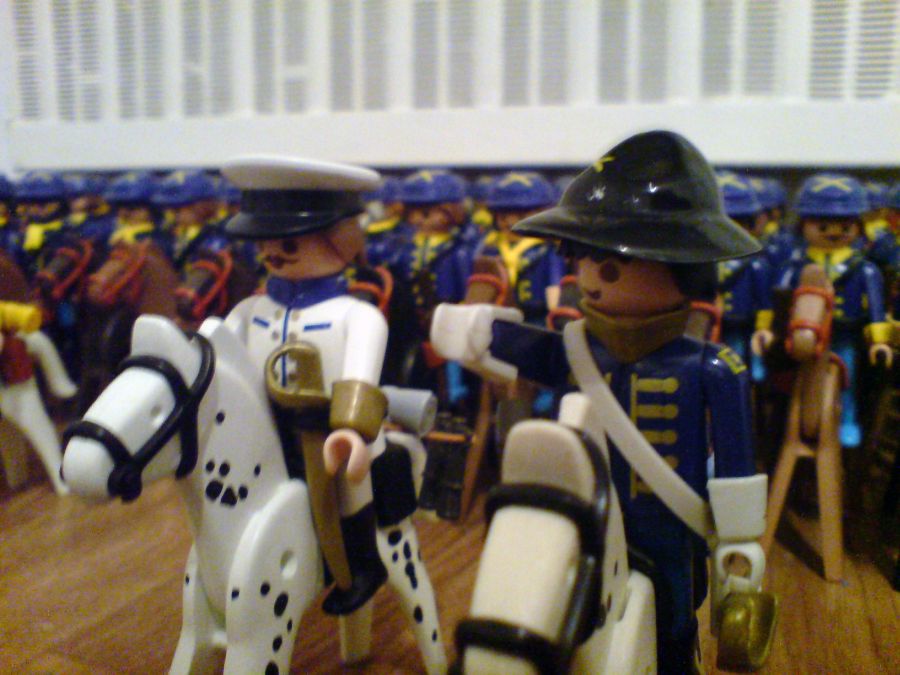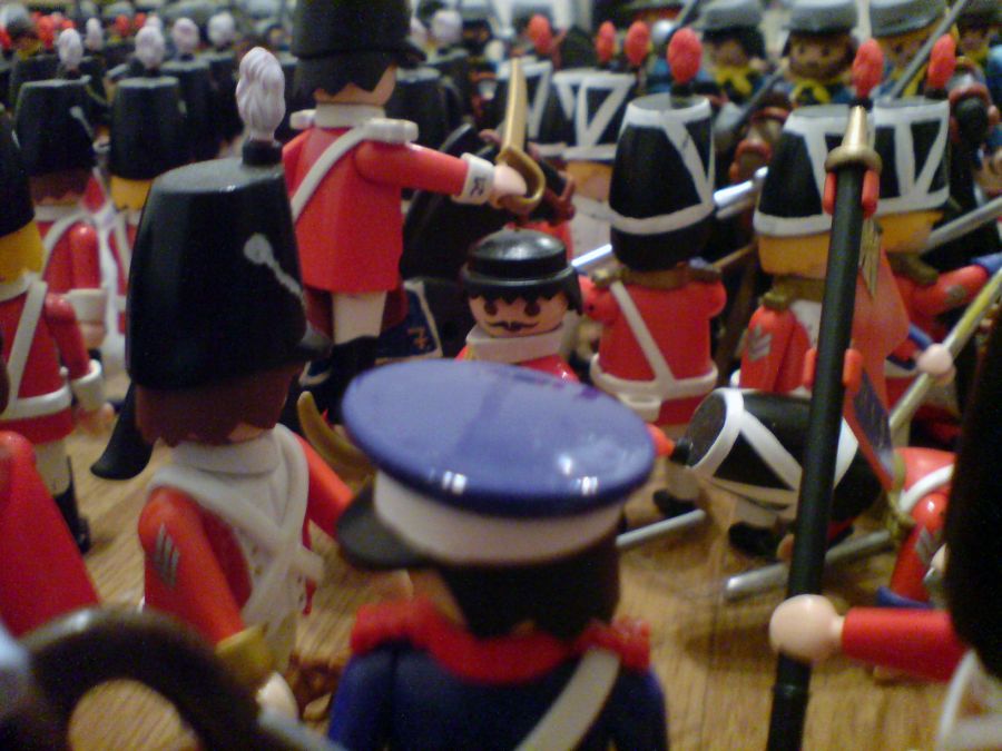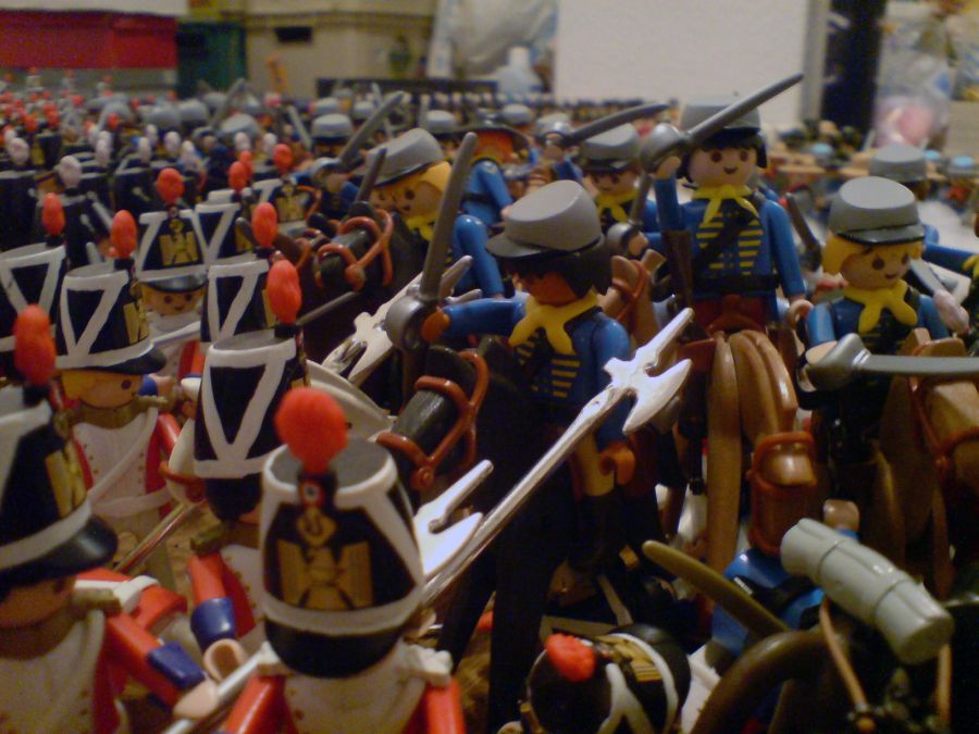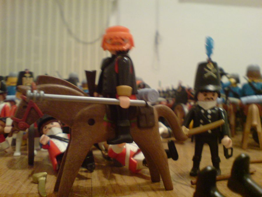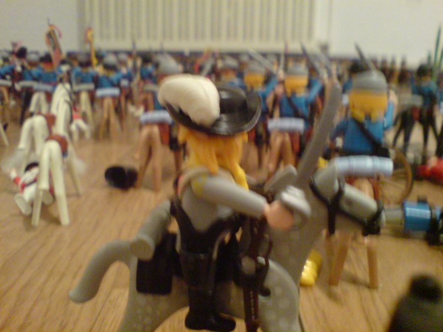 - "General! Wieso können wir nicht an der Rechten entwischen? Dort ist doch noch genug Platz." "Noch, euer Majestät. Sehen sie. Die Kavallerie der Roten, kommt auch auf uns zu."