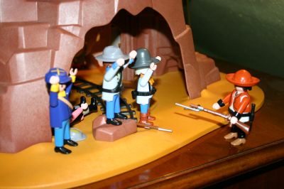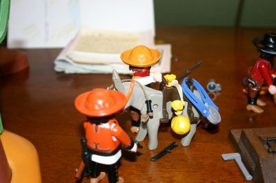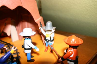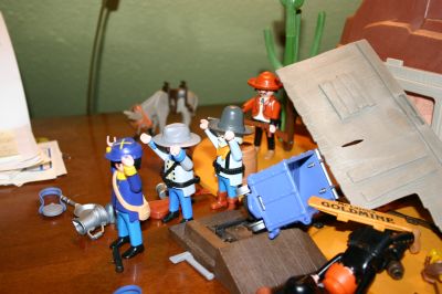 Arthur:Okay, Einer bewacht die Typen, Einer sucht etwas zum Fesseln, und der Rest fängt an den Esel da drüben zu beladen. Kommt Jungs zack, zack, bevor hier irgendwelche Freunde von den Goldgräbern auftauchen..... der Ort wird nicht sicherer, laßt uns so schnell wie möglich von hier verschwinden.