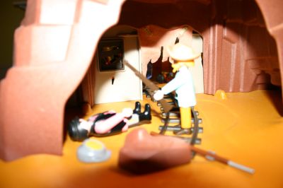 Cook ist skeptisch, ob sie das Faß noch auf den Esel bekommen. Da Arthur auch noch das Dynamit mitnehmen will. Nach seinem Geschmack dauert ihm die ganze Plünderei der Mine viel zu lange. Am Liebsten hätte er sich das Gold unter die Arme geklemmt und wäre abgehauen. Irgendwie möchte er diesen Ort so schnell wie möglich verlassen.