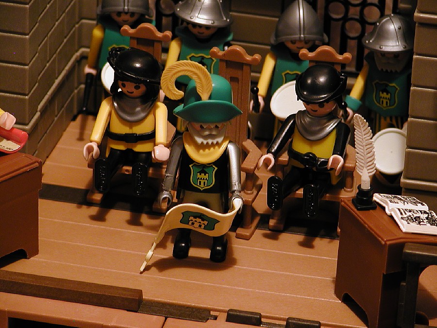 „Was kann ein Schwarzer Ritter damit wohl bezwecken? Ich sage es euch, es ist der Beweis dafür, dass diese Schurken, wie jeder in diesem Saale weiß, uns immer noch vernichten wollen. Dies können wir uns nicht gefallen lassen."