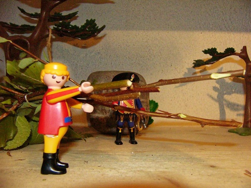Sprach der Herr zu ihm: „Jäger, was willst du schießen?“ Er antwortete: „Zwei Meilen von hier sitzt eine Fliege auf dem Ast eines Eichbaumes, der will ich das linke Auge herausschießen. „ „O, geh mit mir“, sprach der Mann, „wenn wir drei zusammen sind, sollten wir wohl durch die ganze Welt kommen.“