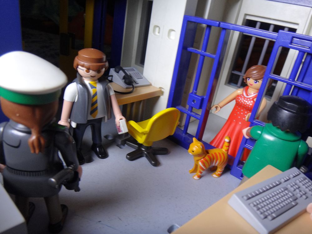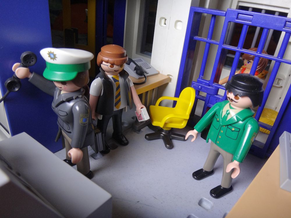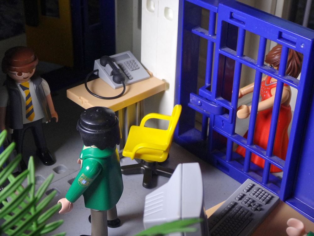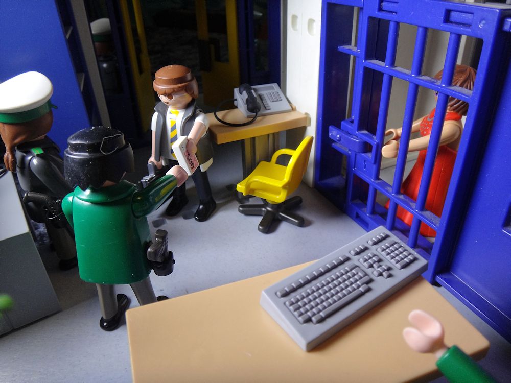 Während die redet, schließt der andere Beamte endlich die Zellentür auf.