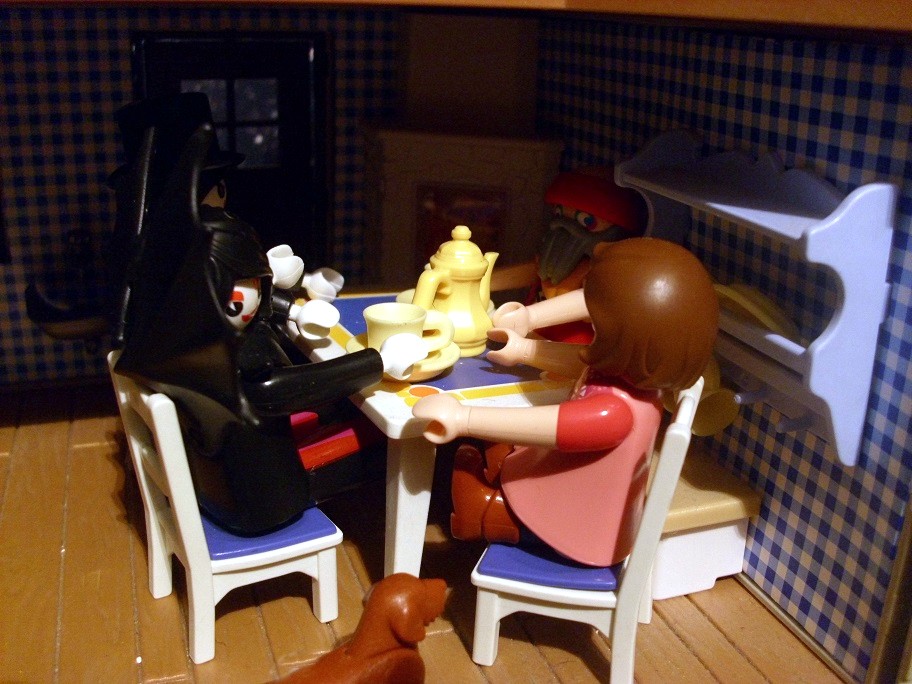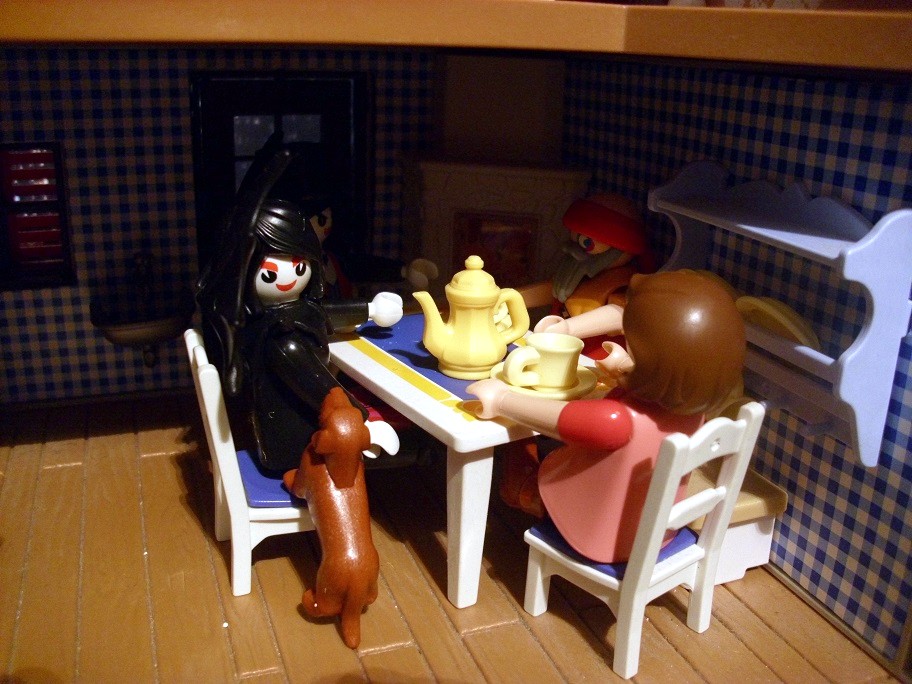 Jasmin: „Sicher, dass Ihr nicht auch noch eine Tasse Tee trinken wollt, bevor Ihr losfahrt?“ Betty: „Nein. Sonst müssen wir unterwegs nur öfter anhalten.“