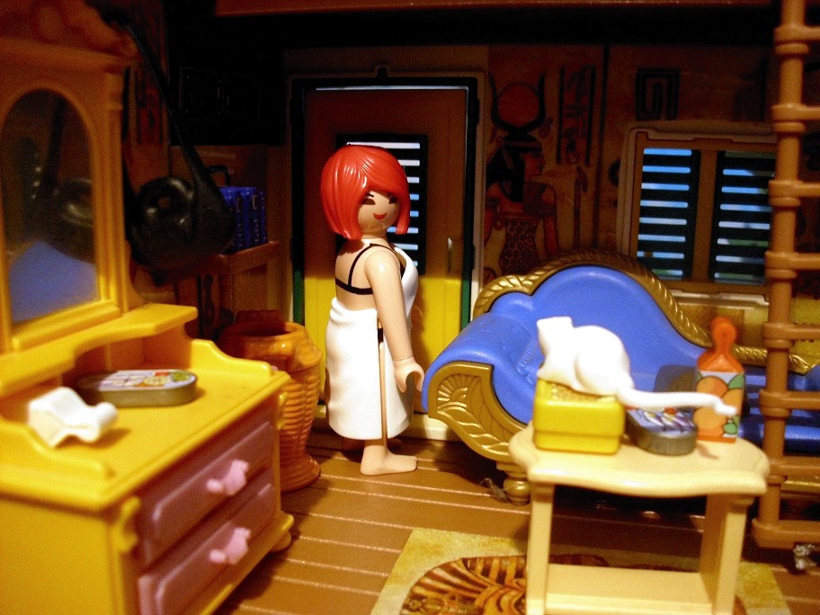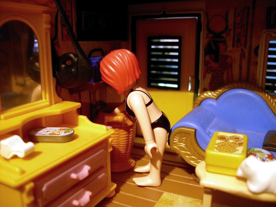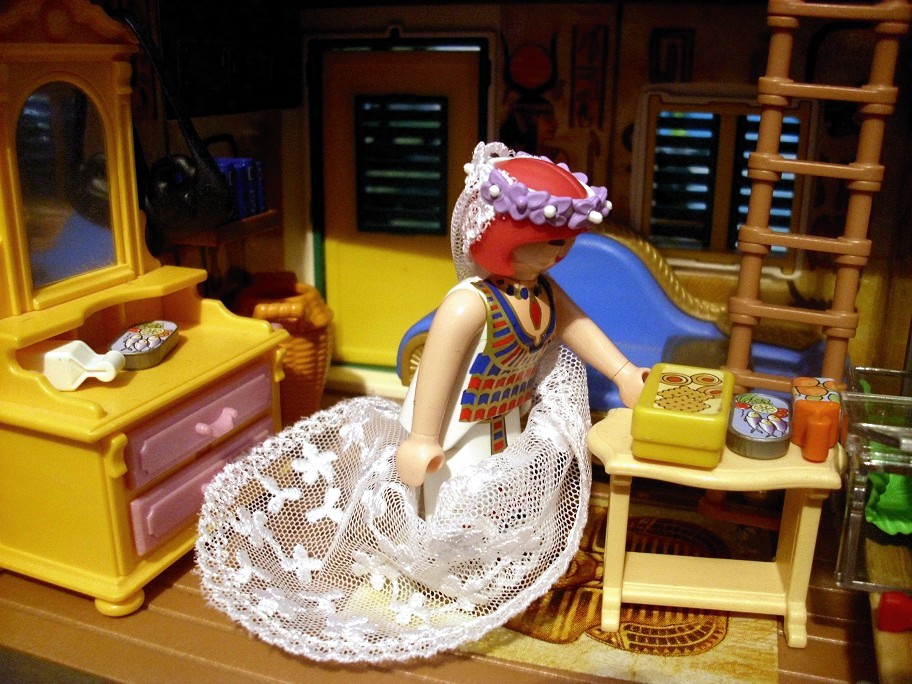 Polly: „Ich hoffe, es bringt kein Unglück, dass Ra mich in dem Kleid schon gesehen hat. Aber er fand es so schön und es ist ägyptisch.“