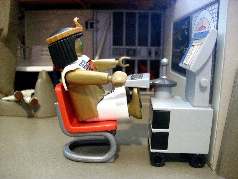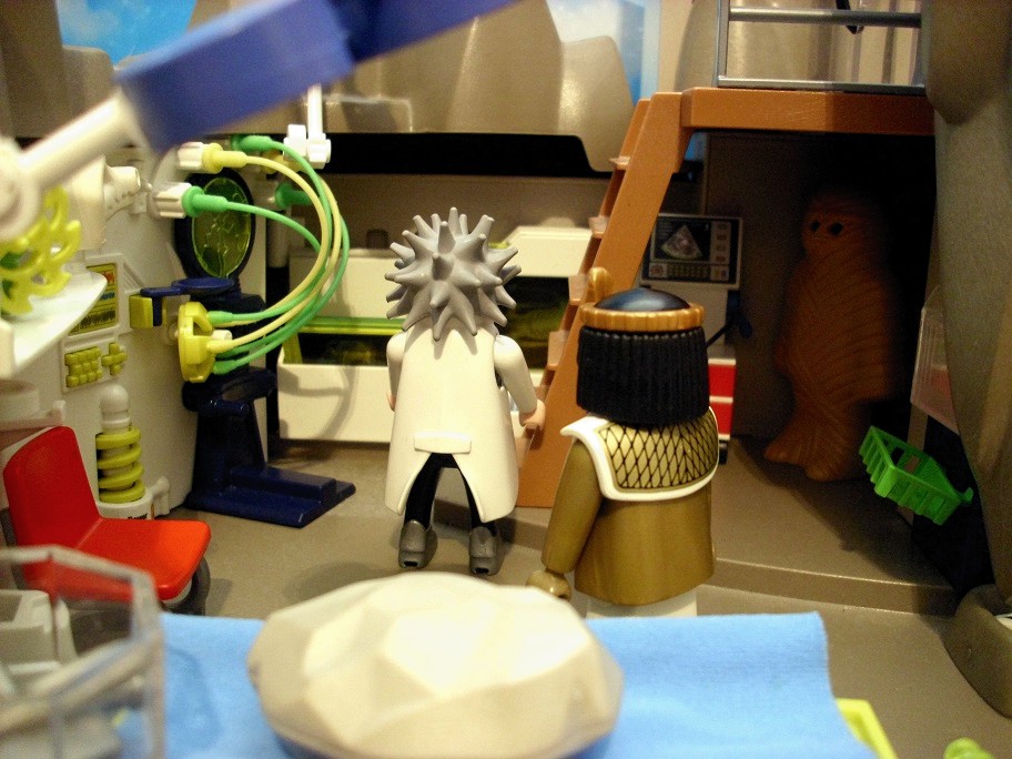 Ra: „Müssen sie sich nicht auch noch umziehen?“ Dr. Evil: „Ra, ich versuche zu arbeiten. Wenn Du mir nicht hilfst, dann störe mich bitte auch nicht immer.“