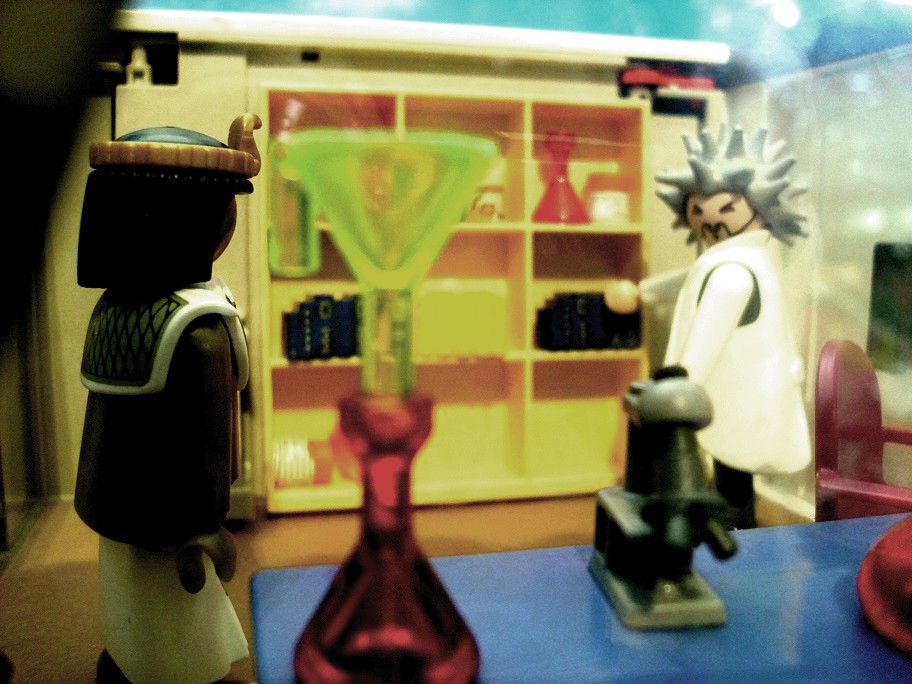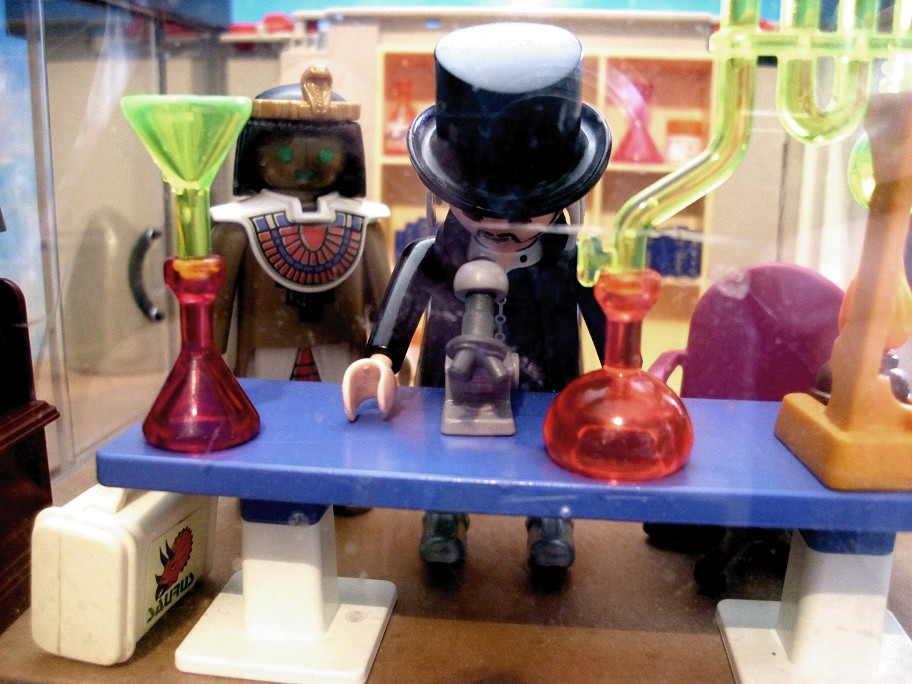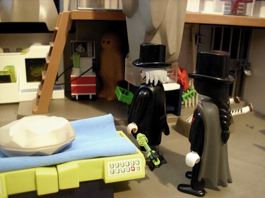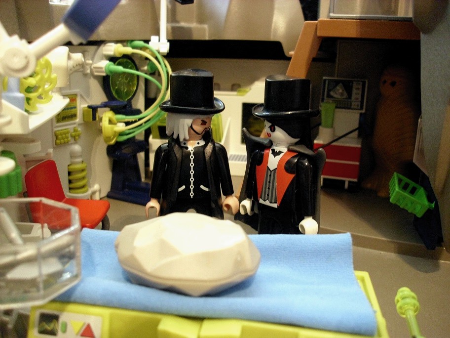 Dr. Evil: „Schau nur, die versteinerten Blutstropfen auf dem Stein. Ach das wäre was für Vlad.“ Dr. Evil: „Die muss ich gleich mal unter dem Mikroskop ansehen.“