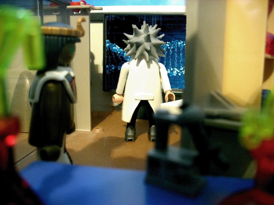 Betty: „Das habe ich mir schon gedacht.“ Vlad: „Das neue Labor ist ja riesig.“