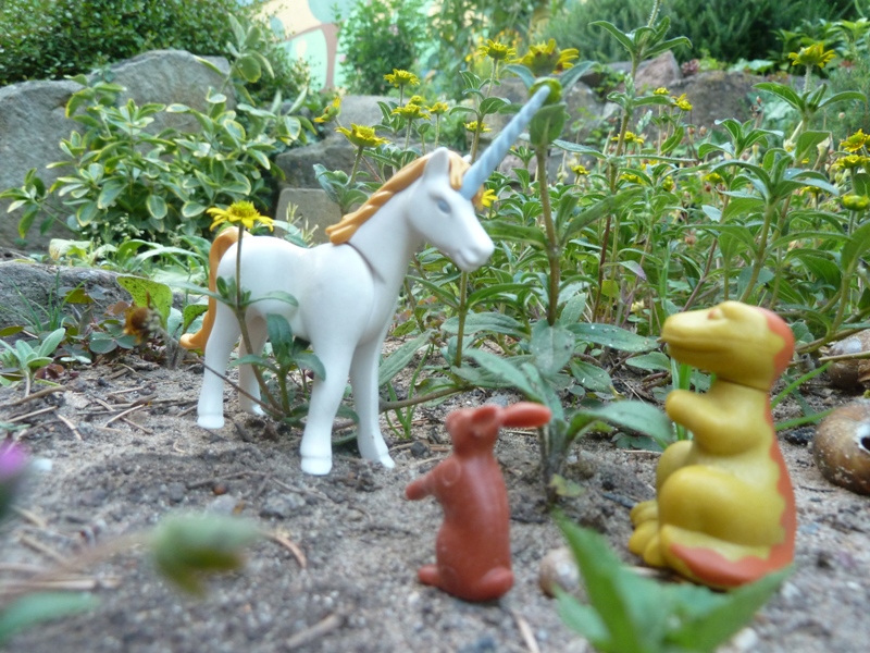 Das Einhorn lächelte und sagte: "Ich bin ein Einhorn, deine Brüder habe ich leider nicht gesehen. Aber frag doch mal das weiße Reh, das kommt sehr weit herum und spricht mit allen. Ich bin nur kurz zu Besuch hier!