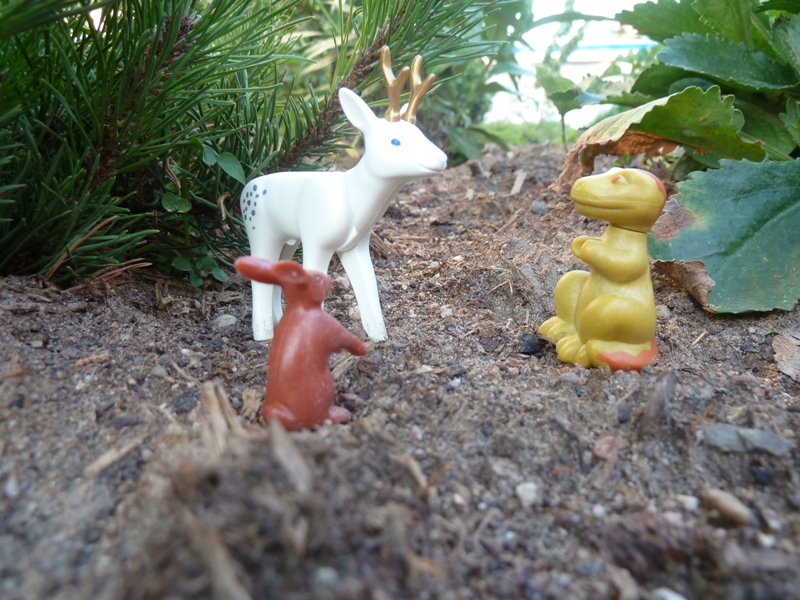"Ab hier könnt ihr alleine weitergehen, ich erwarte hier noch jemanden. Aber dort vorne auf der Lichtung solltet ihr den Pegasus treffen," sagte das Reh und verabschiedete sich von ihnen. Die beiden bedankten sich für die Hilfe und liefen weiter.