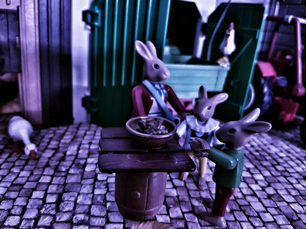 Neugierig schaue ich mich in der Küche um. OK, die Küchengeräte scheinen aus allen Jahrhunderten zu stammen, aber ein Roboter, der Kartoffeln schält, wie genial ist das denn! Sowas hätte ich auch gerne. Den hat bestimmt Cleverle gebaut. Allerdings scheint der Koch gar nicht glücklich darüber zu sein.
