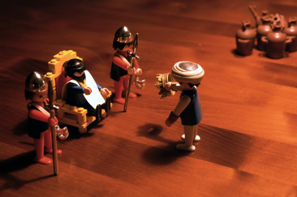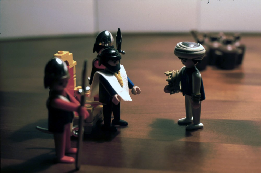 Vorab: die Bilder habe ich im Frühsommer 2000 geschossen, und bis auf wenige Teile stammt das Playmobil aus meiner Kindheit. Es sind, oh Schmach, auch Teile von anderen Spielwaren auf den Bildern zu sehen, die die Firma aus Dänemark mit den vier Buchstaben hergestellt hat. Sollte das nicht erlaubt sein, bitte ich um die Sperrung des Themas.