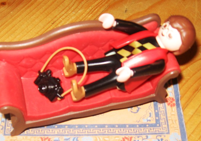 Während sie sich auf ihr Sofa zurückzog, :gruebeln sie, was für eine Aktion da wohl im Ganze ist: