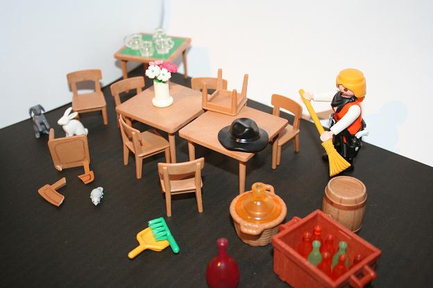 Nachdem ja morgen die 6 Wochen vorbei sind, die unser Hauptmann so (fast) ganz playmobillos verbringen musste, dachte ich so eine kleine Welcome Back Party würde doch sicher allen Spaß machen... Also hab ich mal angefangen, den Partykeller des Klickyforums sauber zu machen, die Reste der letzten Party wegzuräumen und schonmal ein paar Getränke zu besorgen. Schließlich soll bis morgen ja alles fertig sein