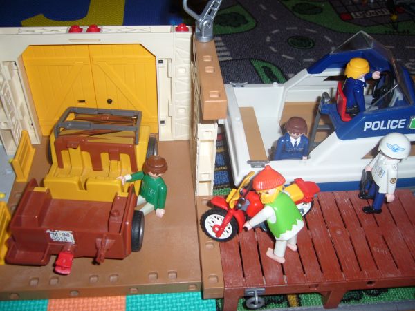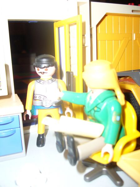 das obere ist das Büro mit dem Gefängnis das untere die Fahrzeughalle und das Dock