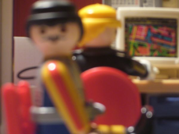 Nur so als kleiner Tipp: Wenn du die Figuren z.B. mit einer Schreibtischlampe beleuchtest und dann den Blitz ausschaltest, sind die Bilder nicht ganz so überbelichtet, den Hauptkommissar erkennt man so fast nicht. (wenn er das wüsste währe er bestimmt sehr ungehalten... :grinsen )