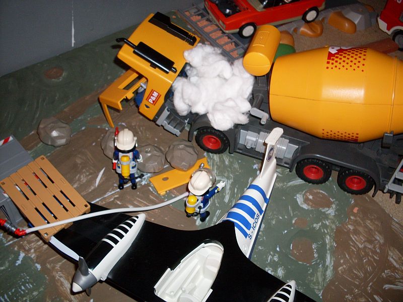 - Ein Kleinflugzeug war abgestürzt und hatte die Steinladung des Krans mitgerissen!