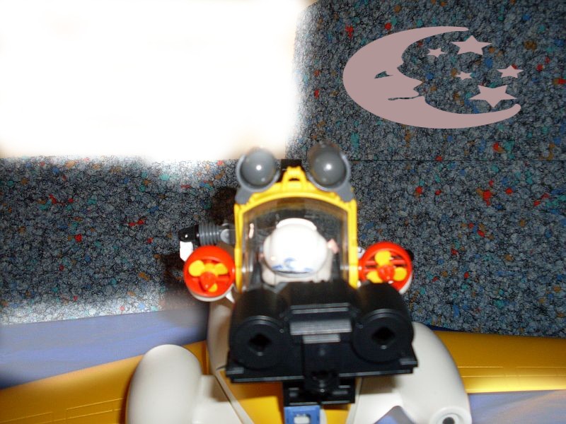 - Auf dem Heck des Flugzeugs befindet sich der Kampfstand, in der Kapsel sitzt der Bordpilot, der mit den Greifarmen entwerder das Maschinengewehr bedient, Proben aufnimmt, oder mit den kleinen Düsen, eine sanfte Landung gewährleistet.