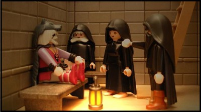 Arns Freund aus der Stadt hatte ihnen neben Proviant auch frische Kleidung mitgegeben. Die Pilgerkutten waren als Verkleidung wertlos geworden, da die überlisteten Soldaten sie gesehen hatten. So wechselten sie die Kleidung. Auch Waffen hatte ihr Verbündeter ihnen besorgt. Dann trennten sich unsere Freunde und ritten ihren jeweiligen Zielen entgegen.