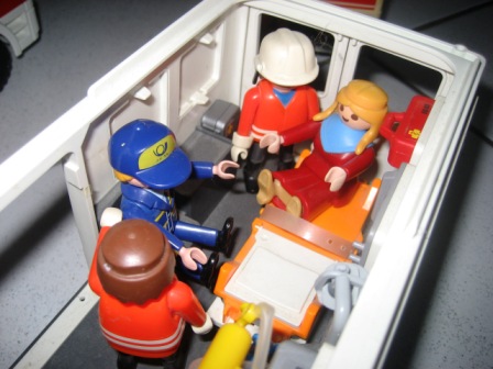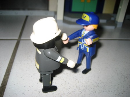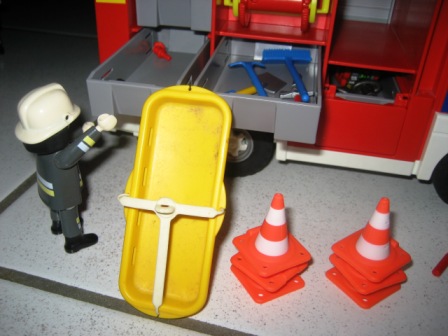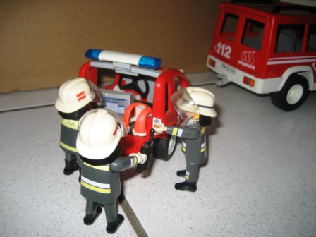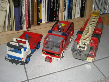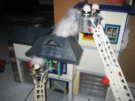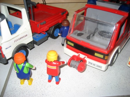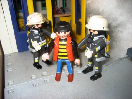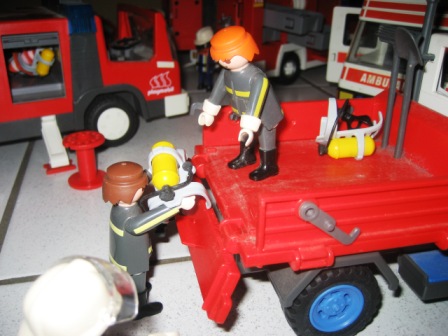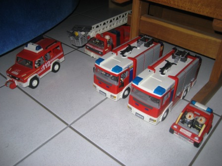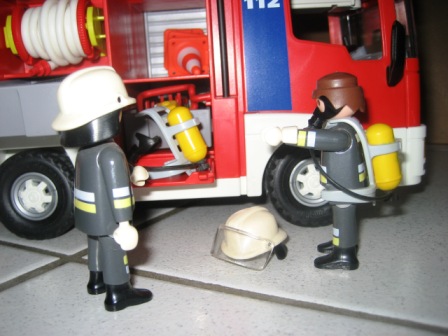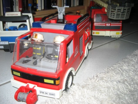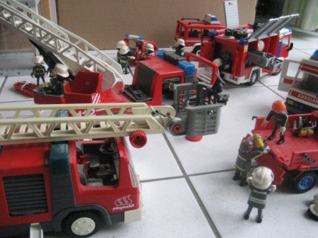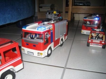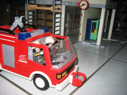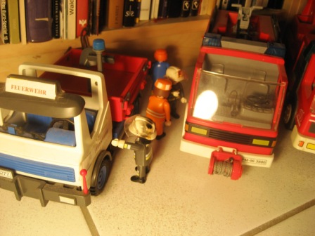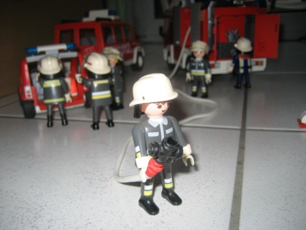 Ich versuche mich mal an meiner ersten Bildergeschichte. Nach einem sehr aufwühlenden Einsatz heute Vormittag im echten Leben habe ich zu Hause meine Playmo-Wehr ausgepackt und ein bisschen "heile Feuerwehrwelt" gespielt. Ich muss sagen, das hilft erstaunlich gut.