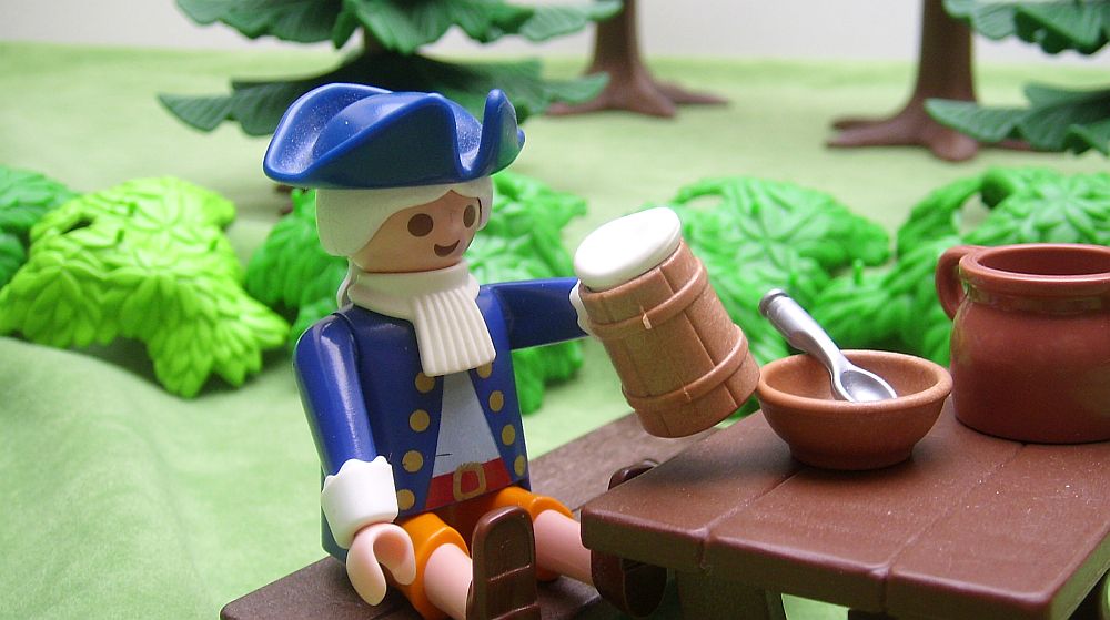 Einige Meter von den beiden Streithähnen entfernt sitzt Vauban bei ausgiebigen Studien der örtlichen Gastronomie.