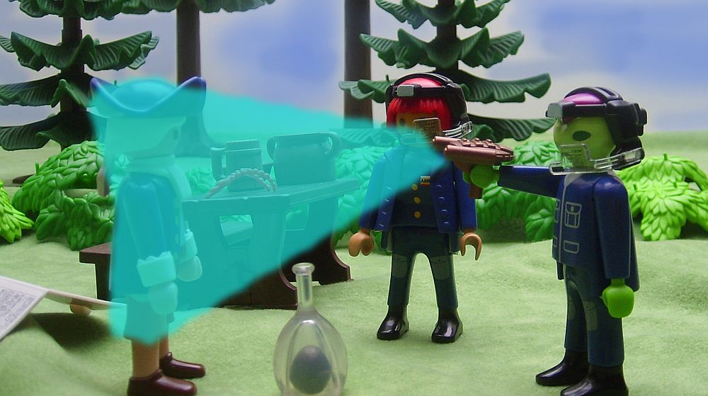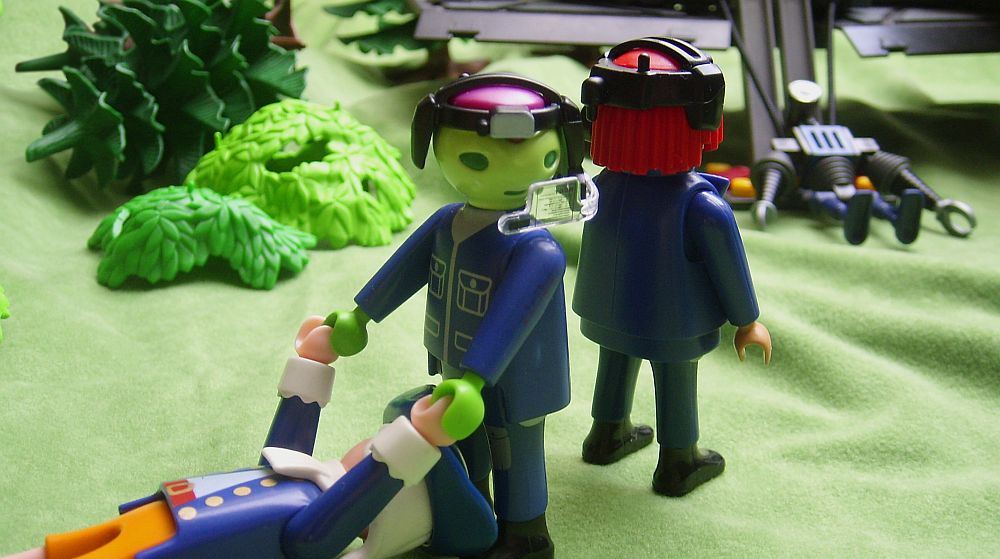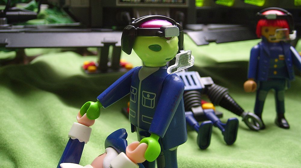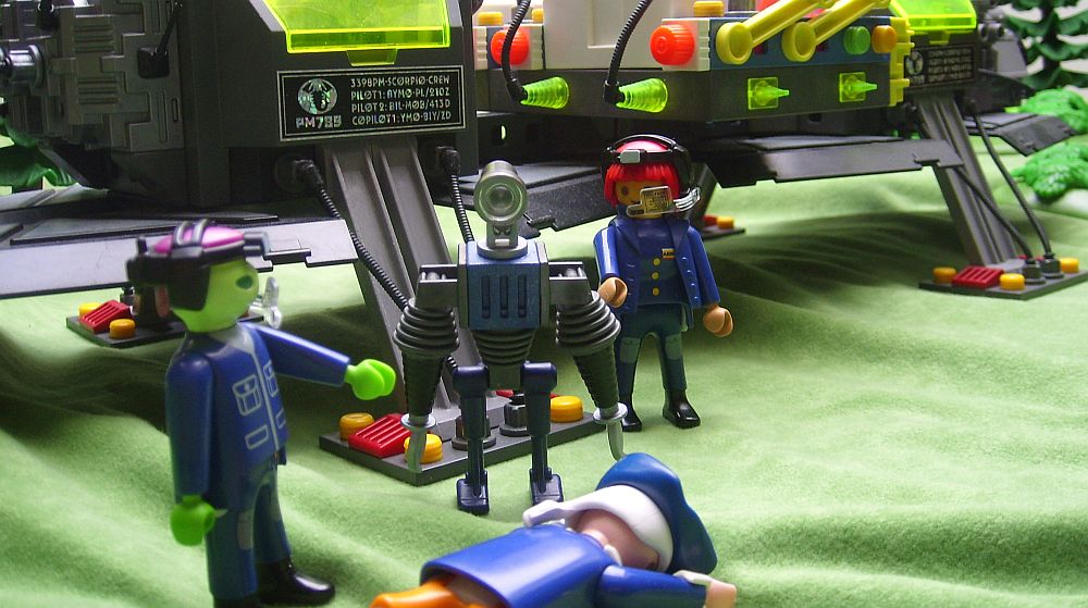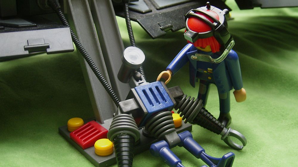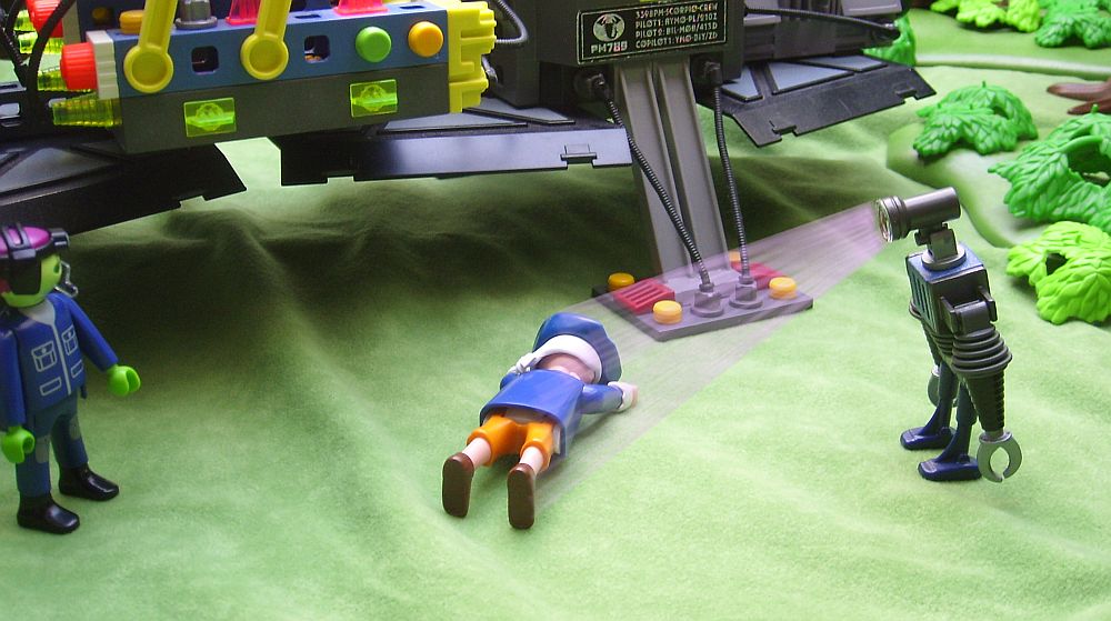 ED-08 richtet seinen Traktorstrahl auf den ohnmächtigen Vauban. “Erhöhe Leistung auf 110%. Ich möchte sie in aller Deutlichkeit darauf hinweisen, dass ich für derartige Schwerstarbeiten nicht konstruiert wurde.”