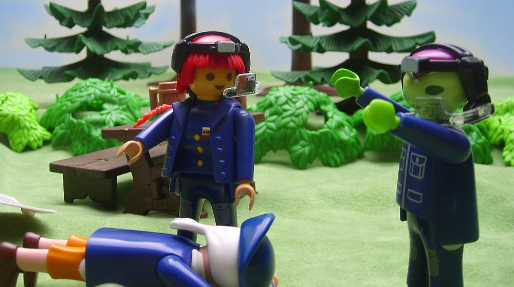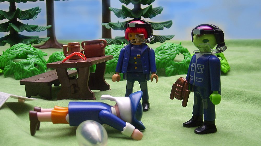 Korben, dessen Luke etwas weniger Zuspruch mit der Faust bedurfte, erwartet die Sebatanierin bereits. „Mit der kleinen Einschränkung jedoch, dass diese Lichtung bis zum Zeitpunkt unserer Landung noch gar nicht existiert hat.“ Die freudige Überraschung des Bürgermeisters, dass durch ein unbekanntes Ereignis ein großer Teil des zukünftiges Parkplatzes bereits vor Baubeginn gerodet wurde, sei hier nur am Rande erwähnt.