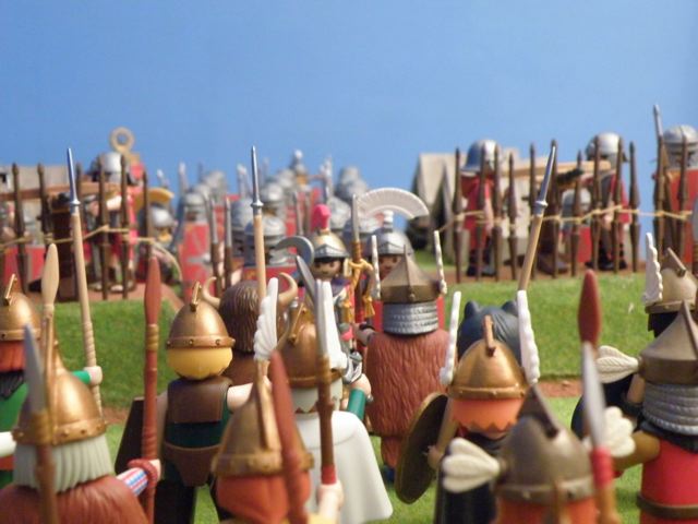 Doch wie so oft wollten die Gallier uns eines Besseren belehren was dazu führte das viele von ihnen bald bei ihren Götter weilen werden. Denn was können sie den schon mit ihren Lanzen erreichen im Gegensatz zu unseren Pilasalven und Skorpiongeschützen.