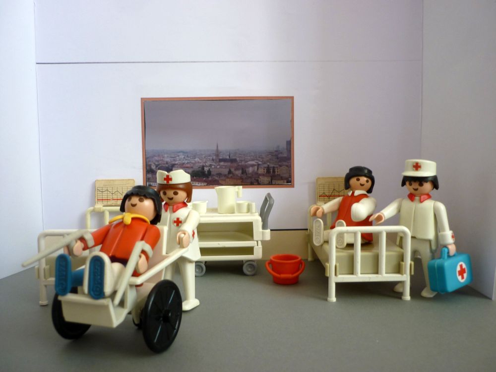 Ich habe mal wieder die Sachen zum Thema Krankenhaus ausgegraben und mal zwei Bilder gemacht. Einerseits von einem Krankenhauszimmer anno 1980 und andererseit voneinem Operationssaal ebenso aus den Anfang der 80er Jahre.